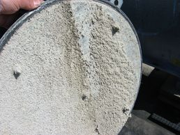 This is the hatch of a B.A.C cooling tower at the start of Hydrocell® treatment in APRIL. Notice the heavy hard scale deposits.....